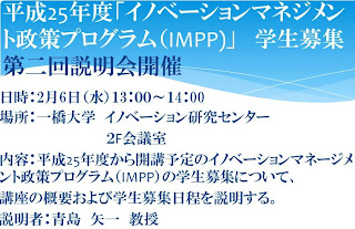 平成25年度から開講する予定のイノベーション・マネージメント・政策・プログラム(IMPP)講座の