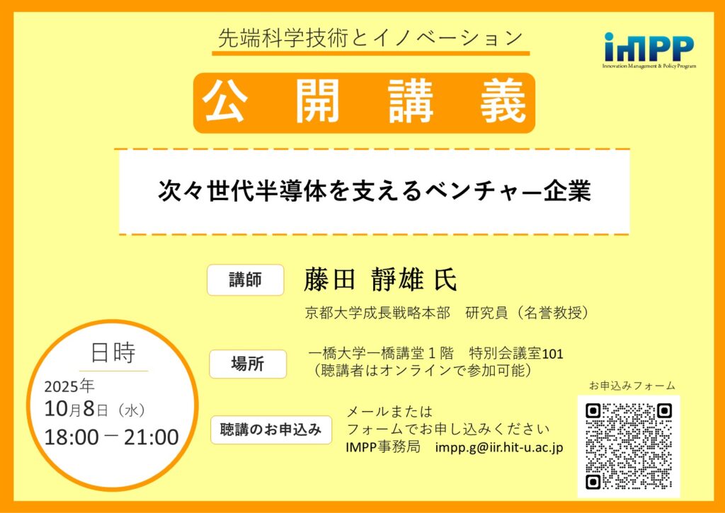 2025年11月19日 第5回「先端科学技術とイノベーション」公開講義のお知らせ